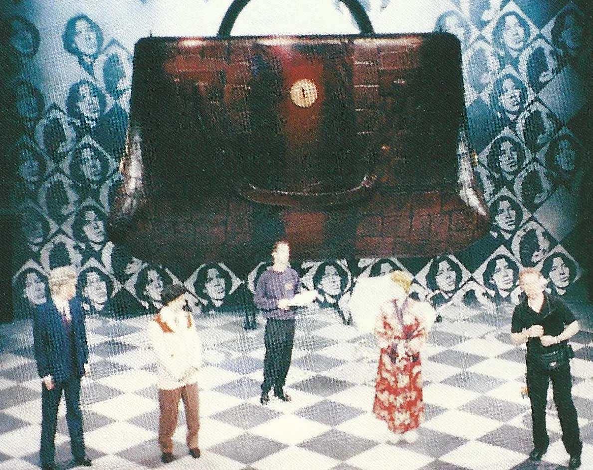 In 1999 Artistic Director of the Bolton Octagon Lawrence Till asked if we would like to be in The Importance of Being Earnest. We said “yes - as long as we could play all the characters.” What followed was one of the most inspired, anarchic productions ever, with multiple characters swapping parts and cross dressing. We toured the production in 2001 with a set, designed by Richard Foxton, consisting of a giant handbag, slowly opening in Act Two to reveal a rural scene. The show toured to huge critical acclaim overshadowing a rival, more traditional production starring Patricia Routledge.”