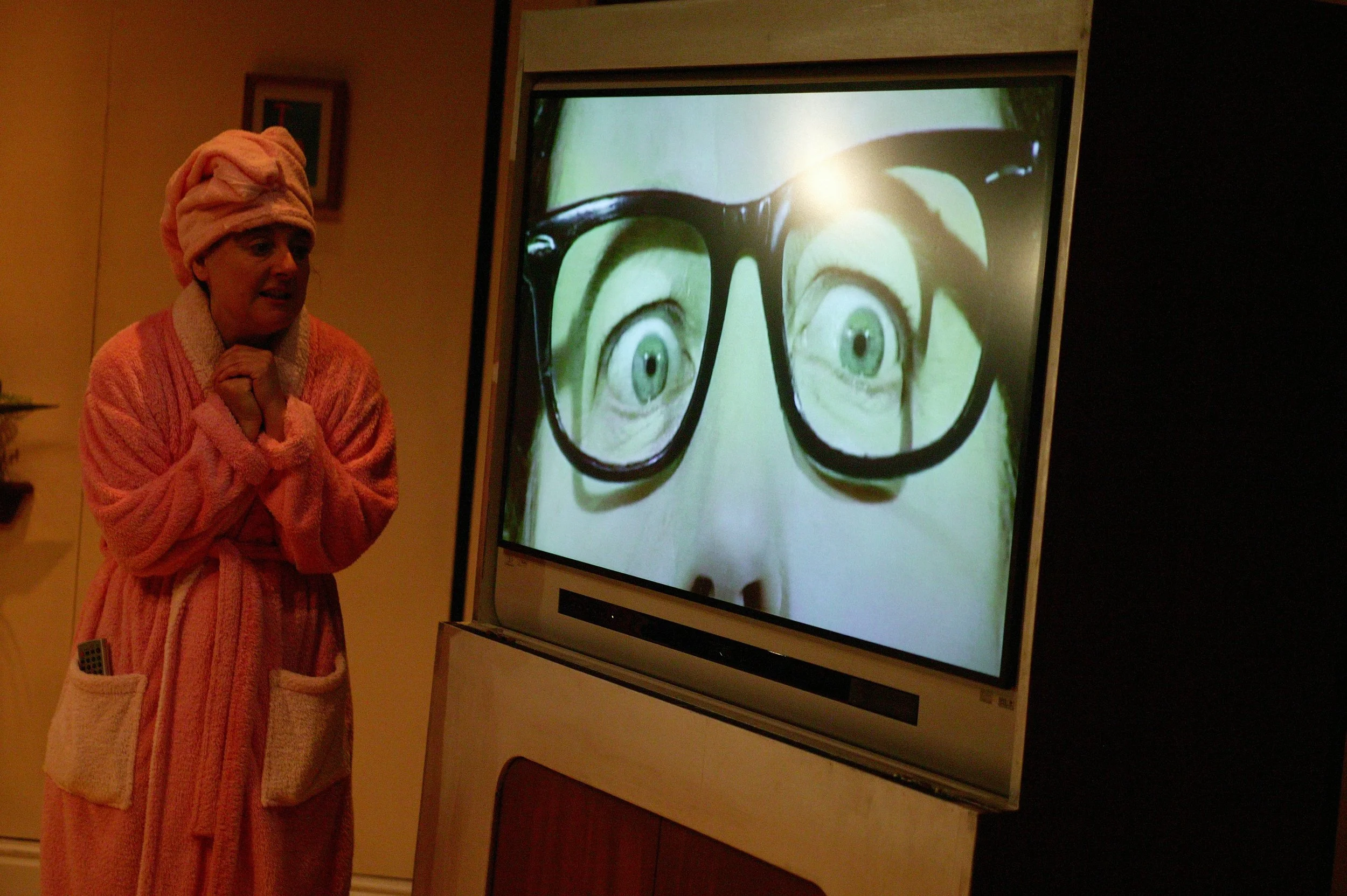Maggie and I were the “wimps” in question, unable to cope with horror movies in any shape or form. So how did we research this project? We watched films mid-afternoon to be less scary. Even so we still had to reach for the sofa cushions as we watched Jack Nicholson axe down the door in The Shining. This was a co-production with Greenwich Theatre and all the Frankenstein sequences were filmed on Blackheath. At one point we had an angry mob run up a hill brandishing pitchforks. We were concerned for one elderly gentleman called Ian who was 99 and suggested he join the mob at the top of the hill, but he pointed out that he had been in the SAS and had no intention of skipping the uphill pursuit. You can see him at the front of the mob in the film clip.”