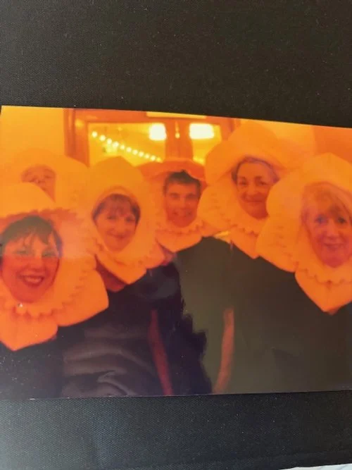 Hi sue and gang. Sorry I have no photo or vid.....but I have a good memory of seeing "Hector's house", your Greek comedy in 2003, at Manchesters library theatre. I went with my "then" creative writing group. It was memorable because, ....during the interval, I fashioned a Greek sailing vessel, from the paper and crayons you left for the audience in the foyer.....after the interval, yourself and Maggie did the judging and I was ecstatic to hear my name called when you chose my ship. I TOTALLY IGNORED...the audiences laughter at my hard work producing the model. I won a Greek yogurt and a [balaclava...which I returned at t he end of the show...[ just wasn't my colour]. We loved the performance.. We also came to see "the importance of being earnest" lip service style. [The year before] Thanks for entertaining us through the years. Much sadness for the loss of lovely Maggie. My partner and I also enjoyed..Jane bond...manchester. Very little women [Oldham].... .Inspector norse..[sale].....great stuff. Kind regards Elsa gee.